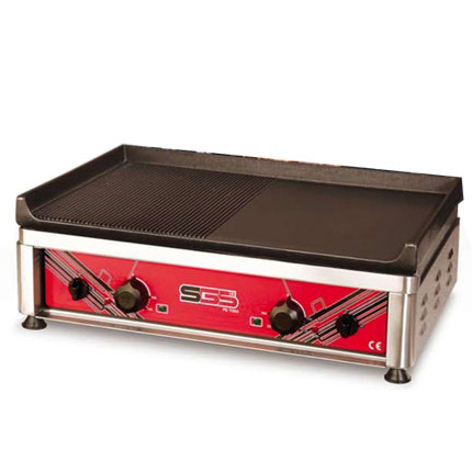 Жарочная поверхность SGS PG7050E имеет два терморегулятора, что при необходимости позволяет включать только ту часть рабочей поверхности, которая используется для приготовления блюд. Температурный режим регулируется от 50 до 300С.